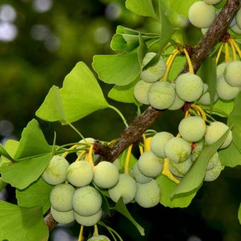 Экзотическое дерево высотой 3-4 м, диаметр кроны 1,2-1,5 м., растёт медленно. Крона вначале пирамидальная, с возрастом разрастается. Лист вееровидный, двухлопастной, шириной 5-8 см., на длинных черешках, сизовато-зелёные, осенью - золотисто-жёлтые. Корень дерева сильный, ветвистый и раскидистый, уходит глубоко в почву. Плоды шаровидные диаметром до 4 см.