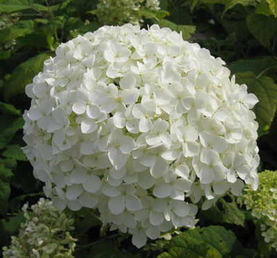 Листопадный кустарник высотой 60-80см. Соцветия крупные, до 30см в диаметре, цветёт на побегах прошлого и текущего года, цветки белые, эффектные. Время цветения июль-сентябрь. Название латинское: Hydrangea arborescens White Ball Особенности выращивания и ухода: Предпочитает плодородные, в меру влажные почвы, солнечные места. Цветение обильное и продолжительное с начала лета и до заморозков. Применение: Используется для создания красивых цветущих изгородей, композиций в парках и садах.