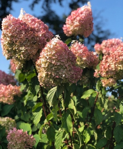 Данный сорт представляет собой карликовый кустарник до 1 м высотой и шириной. Жесткие побеги, прямые. Листья яйцевидные, темно-зеленые, с обеих сторон грубо опушенные. Цветки исключительно плодущие, собраны в конусообразные соцветия на верхушках побегов. Соцветия вырастают до 25-30 см длиной, первоначально соцветия светло-зеленые, с белоснежными с аквамариновыми верхушками, в конце лета цветки розовеют, на цветках хорошо видны зеленые и белые прожилки. Почти все однолетние побеги увенчаны соцветиями. Цветение начинается в июле и продолжается до сентября, после цветения цветки высыхают, оставаясь украшением куста в течение осени и зимы. Латинское название: Hydrangea paniculata 'Graffiti' Особенности выращивания и ухода: Растение светолюбивое, но выносит и полутень. Устойчива к болезням и вредителям, хорошо переносит заморозки. Предпочитает защищенные от ветра участки, с влажной плодородной слабокислой или нейтральной почвой. Применение: Использование универсальное, одиночно на газоне, групповые насаждения и композиции с многолетними цветами.