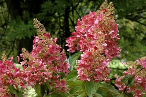 Метельчатая гортензия сорта Pinky Winky – красивоцветущий многолетний кустарник, высота которого может достигать 2–2,5 метра. Растение обладает компактной округлой кроной, упругими и сильными ветвями, устремленными вверх. В период цветения на серо-коричневых побегах гортензии этого сорта формируются пышные конусовидные соцветия (метелки), покрытые мелкими душистыми цветками.Первоначально цветки имеют бело-бежевую окраску, со временем сменяющуюся на насыщенно-розовую. Средняя длина соцветий у гортензий этого сорта составляет около 30 сантиметров. Латинское название: Hydrangea paniculata ' Pinky-Winky' Особенности выращивания и ухода: Растение светолюбивое, но выносит и полутень. Устойчива к болезням и вредителям, хорошо переносит заморозки. Предпочитает защищенные от ветра участки, с влажной плодородной слабокислой или нейтральной почвой. Применение: Использование универсальное, одиночно на газоне, групповые насаждения и композиции с многолетними цветами.