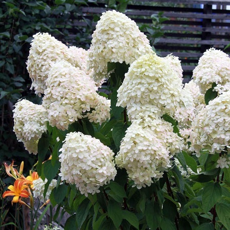Замечательный по своей декоративности сорт гортензии метельчатой. Высота 1,5-2,0 м. Куст прямостоячий. Листья эллиптические, темно-зеленые, бархатистые. Соцветия - очень крупные, пышные, состоящие практически только из стерильных цветков. Цветение очень обильное и продложительное. Окраска соцветий кремовая, с небольшим розовым румянцем на концах соцветий. Штамбовая разновидность представляет собой центральный ствол, имеющий длину 80 см, разветвляющийся сверху в форме дерева, высота растения зависит от высоты штамба. Время цветения июль-сентябрь.
