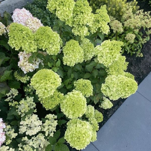 Одной из главных особенностей гортензии "Petite Cherry" являются ее цветы цвет которых меняется от белого в июне и до розового в октябре. Цветы собраны в крупные, плотные соцветия, которые привлекают множество насекомых-опылителей.