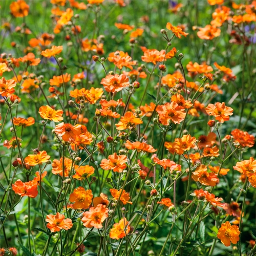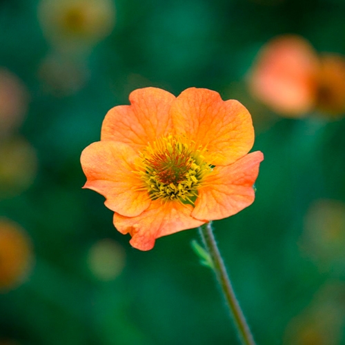 Цветки у гравилата простые, диаметром 3 см, ярко-мандаринового цвета. Они собраны в метельчатые соцветия по 3–4 бутона. Период цветения длится со второй половины мая до начала сентября. Цветение обильное.