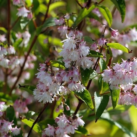 Красивоцветущий листопадный кустарник, высотой до 200 см, шириной 150 см. Цветки махровые, колокольчатой формы розовые, многочисленные, собраны в кистевидные соцветия до 12 см длиной. Листья летом зеленой окраски к осени приобретают пурпурно-красный оттенок. Цветёт в июне- июле на прошлогодних побегах.
