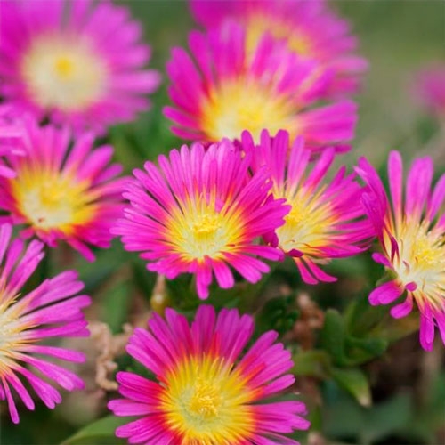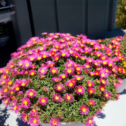 почвопокровный суккулентный многолетник высотой 10-15 см. Образует плотные ковровые куртины с сочными шиловидными листьями (сизо-зелёные с восковым налётом). Цветки крупные (3-4 см), розовые с жёлтым центром, полностью покрывают растение в период цветения (июнь-сентябрь). Латинское название: Delosperma 'Delmar™ Pink' Особенности выращивания и ухода: полное солнце, исключительно дренированные бедные почвы. Уход: засухоустойчив, запрещён полив зимой, в холодных регионах требует сухого укрытия. Применение: Идеальный выбор для альпинариев и рокариев, где создаёт живописные цветущие подушки между камнями, прекрасно подходит для контейнерного озеленения - горшков, кашпо и балконных ящиков. Благодаря исключительной засухоустойчивости незаменим для озеленения крыш и укрепления склонов, где эффективно предотвращает эрозию почвы. В ландшафтном дизайне великолепно смотрится в суккулентных садах в сочетании с молодилами и очитками, а также используется для создания эффектных бордюров и оформления передних планов цветников, образуя плотный цветущий ковёр. Особенно ценится при создании садов в средиземноморском стиле и композициях для сухих участков.