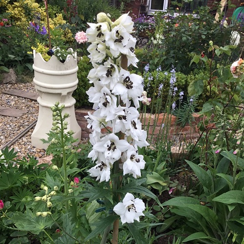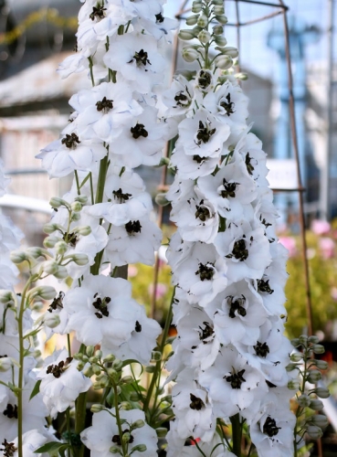 Многолетнее растение, высотой 100-110 см, куст крепкий. Соцветие плотное, конусовидное, цветки до 6 см в диаметре, полумахровые белые с черным глазком. Цветение: июнь-сентябрь Название латинское: Delphinium elatum 'Black Pearl' Особенности выращивания и ухода: Предпочитает освещенные участки с легким затенением в полуденные часы и хорошо защищенные от ветра места. Почва необходима глинистая, богатая питательными веществами. Плохо переносит жаркие участки. Зона зимостойкости 3-4. Использование: В ландшафтном дизайне и озеленении используется как доминирующее растение в цветнике. Хорошо комбинируется с другими многолетниками.