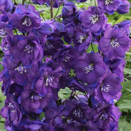Многолетнее цветочное растение, высотой до 150 см, . Соцветие в виде плотного конуса длиной не менее 60см состоит из ярких лилово-фиолетовых полумахровых цветков диаметром до 5-6см. Цветки дельфиниума этого сорта образованы окрашенными бархатистыми чашелистиками и тычинками того же яркого цвета. Период цветения июнь-июль