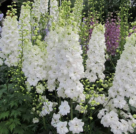 Название латинское: Delphinium Pacific Galahad Особенности выращивания и ухода: Нуждается в солнечном, защищенном от ветра месте, переносит полутень. Зимостоек.
