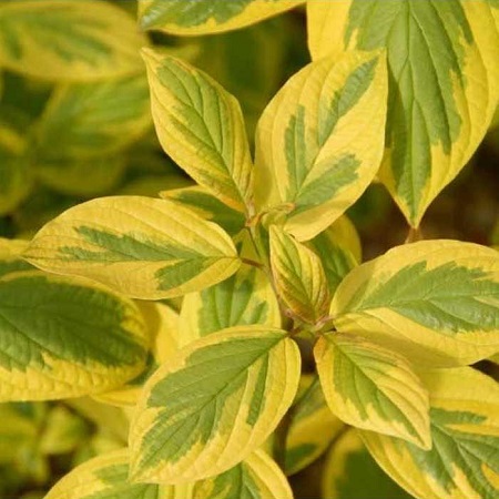 Листопадный кустарник. Форма кроны раскидистая, широкоокруглая, до 2,5 м в диаметре. Высота взрослого растения до 2,5 м. Кора на молодых побегах оливково-зеленая, к осени становится коралово-красной. Листья широкие, яйцевидные, серо-зеленые с золотисто-желтой каймой с розоватыми вкраплениями, несколько морщинистые, снизу сизовато-белые, осенью желтые, оранжево-красные. Цветки Мелкие, белые, собраны в многочисленные щитковидные Латинское название: Cornus alba "Spaethii"