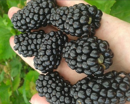 Бесшипный высокоурожайный сорт. Ягоды данного сорта конической формы, насыщенно-чёрного оттенка с типичным для ежевики глянцем, плотные, с сильным ежевичным ароматом, крупные, весом до 10 г, сладкие, очень хорошего вкуса. Мякоть сочная и плотная. Вкус плодов сладок, присутствует изящная, слегка ощутимая и приятная кислота. Вкус плодов сладок, присутствует изящная, слегка ощутимая и приятная кислота. На побегах отсутствуют колючки (впервые у сорта, плодоносящего два раза за сезон), плети вырастают до 2 м. Растут в средней мере.