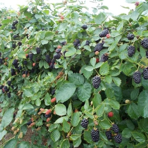 Плоды этого сорта ежевики красивые, окрашены в черный цвет и имеют характерный блеск. Они обладают вытянутой цилиндрической формой, в среднем достигают длины 3,7-4,0 см и веса 9 граммов. При хорошем уходе и свободной посадке отдельные ягоды могут достигать веса до 12,7 граммов. Созревшие ягоды яркие, блестящие и окрашены в темно-синий цвет, а при перезревании становятся матовыми и имеют оттенки, близкие к черному. Вкус плодов гармоничный, они очень сладкие с легкой ноткой кислинки и чуть терпким послевкусием. Урожайность очень высокая.