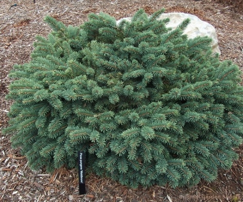 Mедленнорастущий сорт. Крона округлая гнездовидная рыхлая, к старости становится плотным широким конусом. Высота взрослого растения – 0,8м, диаметр – 1м. Хвоя серебристо-сизая, молодая хвоя имеет ярко-голубой цвет. Иголки толстые мягкие на коротких плотно расположенных побегах. Растет медленно.