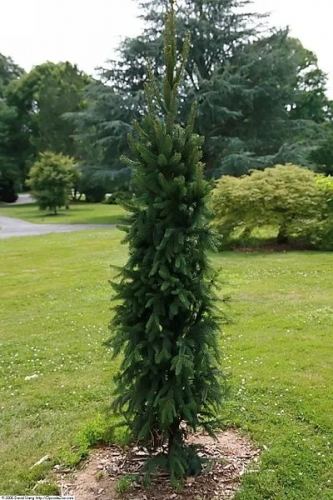 Вечнозеленое хвойное дерево, которое отличается своей красивой, вертикальной формой. Оно идеально подходит для небольших пространств, так как растет быстро и к 10 годам достигает высоты 2,5-3 метра и диаметра кроны 0,8 метра. Сучья прямые, а ветви короткие и загнуты кверху, светло-оранжевого цвета и короткоопушенные. Почки мелкие и окружены иголками. Иголки ели имеют длину 12-14 мм и сначала имеют голубовато-зеленый оттенок, который впоследствии становится зеленым. Очень вынослива и способна выдерживать высокие снеговые нагрузки.