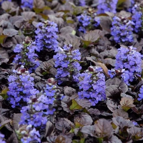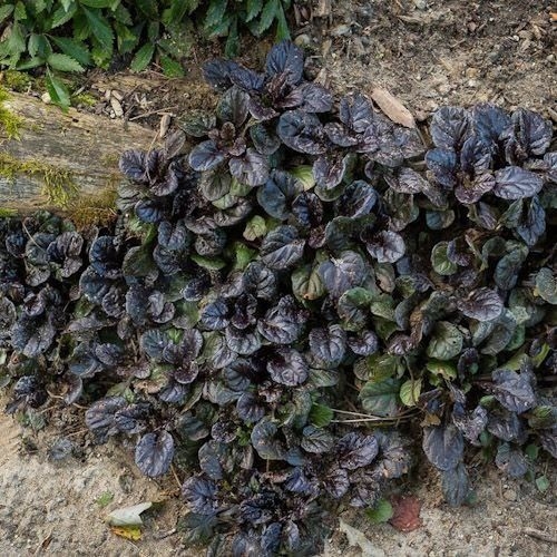 Многолетник высотой до 10 см. Глянцевая, рельефная листва глубокого свекольно-фиолетового цвета, края неровные, волнистые, в виде гребешка. На солнце окраска более насыщенная. Название латинское: Ajuga reptans Black Scallop