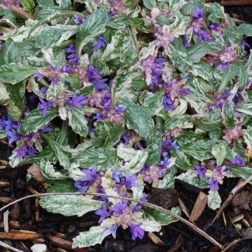 Красивое почнопокровное растение высотой до 10 см., обладает блестящими, толстыми листьями темно-зеленого цвета с кремовыми пятнами. Весной молодые отростки имеют еще более насыщенный бело-кремовый оттенок. После первых осенних заморозков они приобретают красивый розовый цвет. Цветки имеют насыщенный сине-фиолетовый цвет, распускаются в мае-июне в течение 20 дней