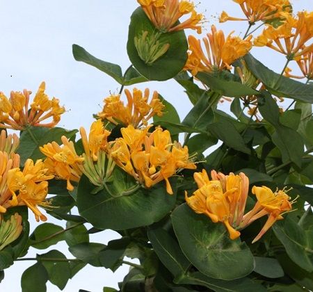 Жимолость Тельмана — это вьющийся листопадный кустарник. В нашем климате высота не превышает 2-2,5 м. Цениться за обильное и эффектное цветение. Цветки оранжево-золотистые, после цветения завязываются ярко-оранжевые ягоды.