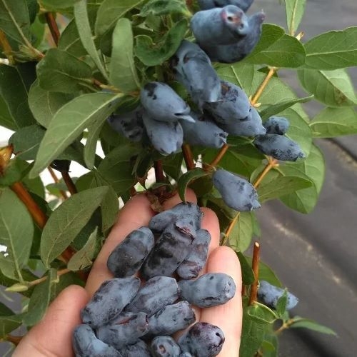 Поздний сорт жимолости канадской селекции, период плодоношения растянутый, длится с июня по сентябрь. Кусты высотой до 1,8 м., имеет жесткие побеги, ветки не прогибаются под тяжестью плодов. Масса ягод – 2,8-3,9 грамма. Плоды овальной формы, с темно-синей кожицей. Вкус сочетает сладость и кислинку в идеальной пропорции, обладает потрясающим ароматом. Мякоть очень сочная, мясистая, дегустационная оценка вкусовых качеств сорта 4,9 балла из 5-ти возможных.