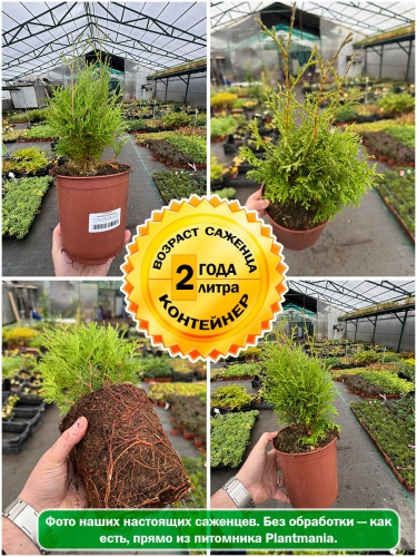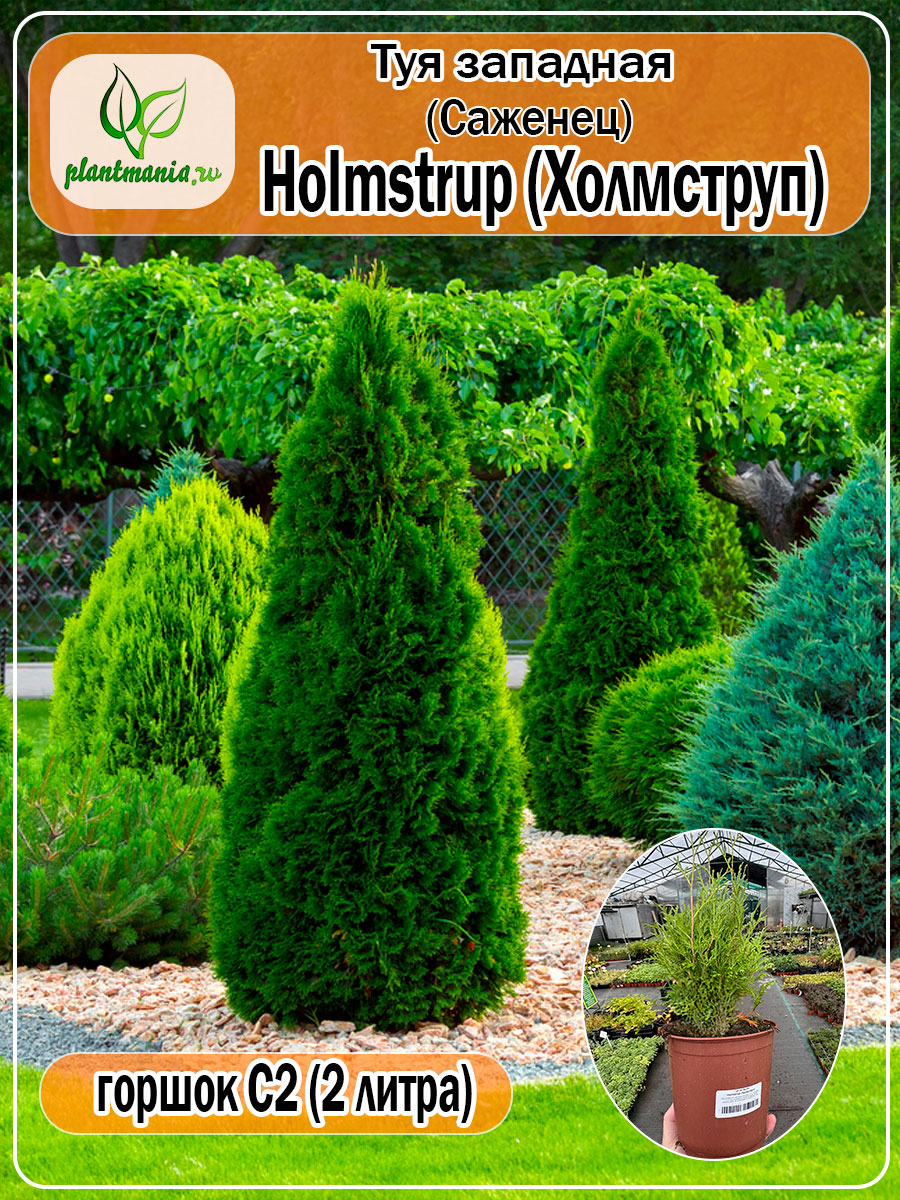 Латинское название: Thuja occidentalis 'Holmstrup' Возраст: 2 года (третий сезон вегетации) — сформированное молодое растение с развитой корневой системой, готовое к активному росту.