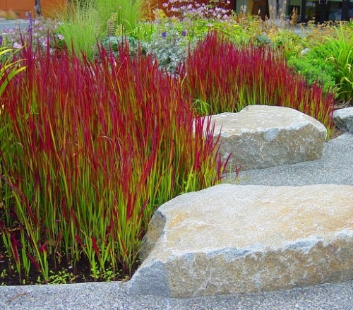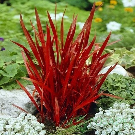 Злак, высотой 80 см имеющий необычную окраску листьев. Молодые листики ярко-зеленые, с винно-красными кончиками, при отрастании все более и более краснеют. По мере приближения конца сезона и осенью приобретают кроваво-красный оттенок. В условиях средней полосы практически не цветет. Название латинское: Imperata cilindrica 'Red Baron' Особенности выращивания и ухода: Выдерживает полутень, но максимальной декоративности достигает только на открытом солнечном теплом месте. Почва хорошо дренированная, застойной сырости не переносит. Использование: Сорт незаменим для японского садика, в контрастных цветниках, хорош как акцентное растение, может выращиваться в контейнерах.