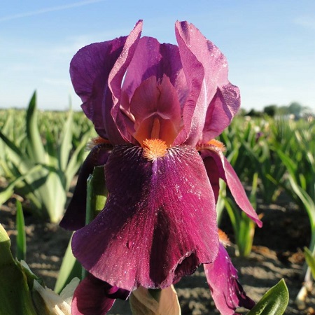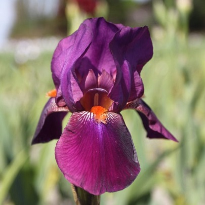 Высота растения, как правило, достигает 70-90 см. Листья прикорневые, линейные, собраны в основании в вееровидные пучки. Цветки имеют окраску тёмно-фиолетового цвета, у основания жёлтый, с буро-фиолетовыми жилками. Растение образует от 1 до 7 цветков размером 10-15 см в диаметре. Цветёт в июне-июле. Цветение длится от 4 до 6 недель, продолжительность жизни цветка составляет до 5 дней.
