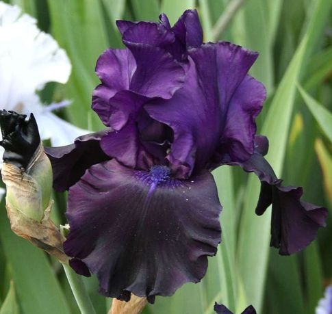 Высота 70-90 см. Листья прикорневые, линейные, собраны в основании в вееровидные пучки. Цветки крупные, стандарты темно-фиолетовые, фолы почти черные. Растение образует от 1 до 7 цветков размером 10-15 см в диаметре. Цветёт в июне-июле. Цветение длится от 4 до 6 недель, продолжительность жизни цветка составляет до 5 дней.