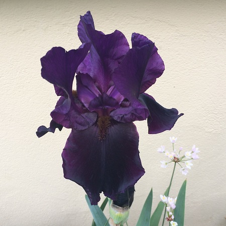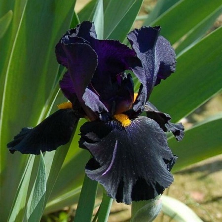 Форма цветка крупная, безупречная, иссиня-черного цвета диаметром 13-15 см, сильно гофрированный с бархатистыми фолами, бородка черно-виноградная. Аромат нежный и приятный, слегка уловимый. Цветение происходит в мае очень продолжительное время, в течении 10-15 дней, цветонос крепкий высокий, до 60 см. Листья широкие, линейные, прикорневые, сизо-зеленого оттенка, прекрасно сохраняют форму и декоративность в течении всего лета.