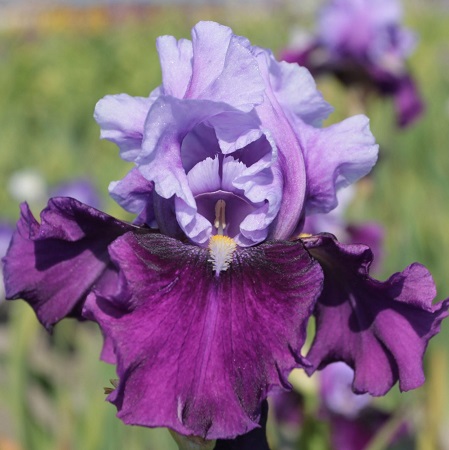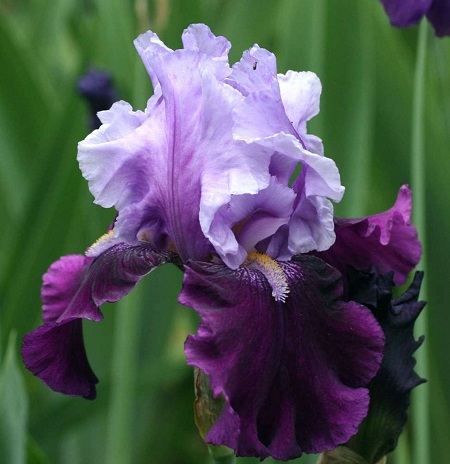 Многолетник высотой 80-90см с зелено-синими мечевидными листьями. Блестящие цветки имеют сияющую, темную фиолетово-синюю окраску нижних долей и светлую розово-фиолетовую окраску верхних. Цветение - май-июнь. Повторно цветущий.