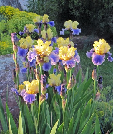 Период цветения приходится с мая по июль, образуя крупные цветы диаметром 10-15 см, верхние гофрированные лепестки ярко-желтого оттенка , а нижние волнистые лепестки нежно-голубого цвета. Аромат нежный, сладкий. Продолжительность обильного цветения до 4 недель. Высота восхитительного ириса бородатого Эдит Волфорд достигает 60-70 см, листья, линейные, прикорневые, сизо-зеленого оттенка, прекрасно сохраняют форму и декоративность в течении всего лета.