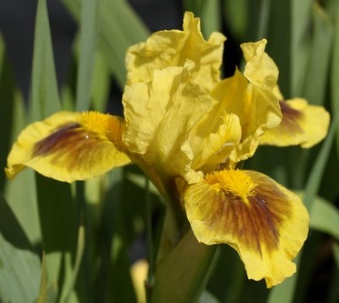 Эффектное многолетнее растение. Высота во время цветения - 20-30 см. Цветок желтый с коричневой губой. Цветёт в мае-июне. Листья широколинейные, 10-15 см длиной.