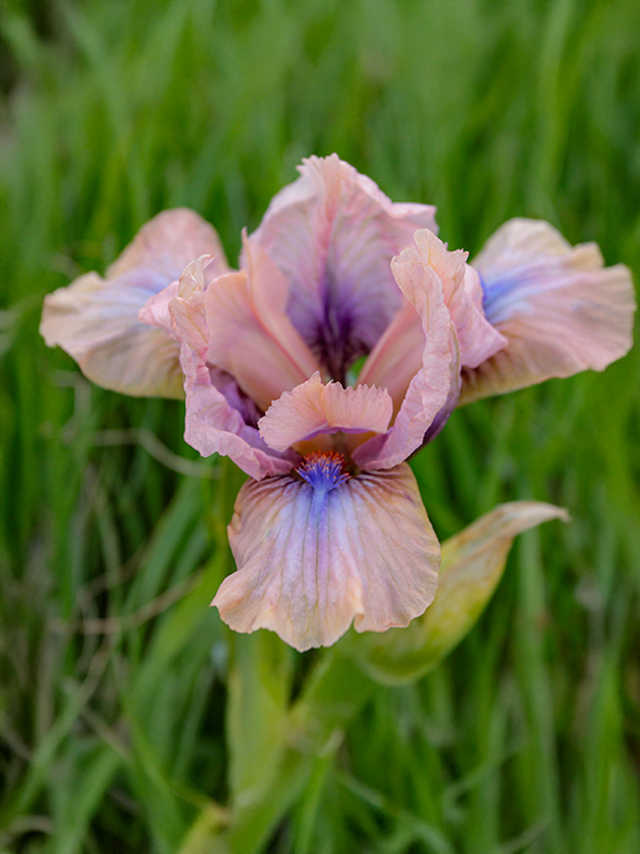 Голубовато-фиолетовая бородка добавляет глубины и подчёркивает «акварельный» характер окраски. Ирисы этого сорта выглядят очень утончённо и идеально подходят для нежных, пастельных композиций.