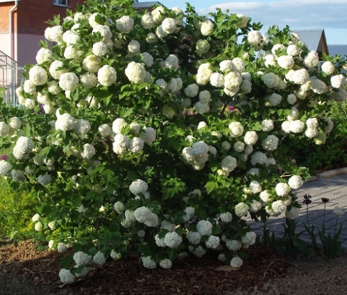 Обильноцветущий, но не плодоносящий сорт калины. Высота до 2,5 м. Крупные шаровидные соцветия состоят только из стерильных цветков. Время цвтения: конец мая-начало июня.