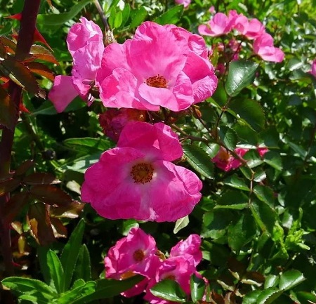 William Booth, представленный в 1999 г. – морозостойкий раскидистый шраб, достигает 1,5 м в высоту и 3 м в ширину. Цветет с июня по сентябрь, очень устойчив к заболеваниям. Бутоны темно-красные, по мере распускания цветки становятся красными, а затем выгорают до светло-красных. Цветки около 5 см в диаметре, немахровые, появляются в кистях по 8-10 шт.