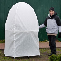 В комплекте – укрытие из укрывного материала, полимерные трубки, колышки для крепления – 3 шт.