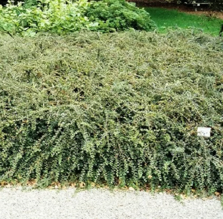 Красивый, густой стелющийся сорт кизильника. Растет умеренно быстро, по 10-20 см в год. Вырастает до 40-50 см высоты и до 1,5 м ширины. Побеги длинные, тонкие, ниспадающие. Листья мелкие, яйцевидные, густо покрывающие ветви. Все лето листья имеют темно-зеленую окраску, а осенью становятся ярко-красными. Плоды круглой формы, крупные, обильно покрывающие ветви.