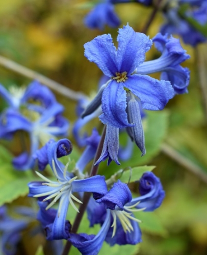 Травянистый многолетник (не лиана), длина побегов составляет 80-100 см, не способен цепляться за опору, но опирается на нее. Листва крупная зубчатая. Цветки густо-фиолетово-синие, трубчатые, немного напоминают гиацинт, мелкие, ароматные. Лепестки сильно отгибаются назад. Осенью образует пушистые соплодия. Отлично подходит для срезки. Особенности выращивания: Предпочитают легкие почвы, богатые питательными веществами. Одинаково развиваются как на солнечных местах, так и в полутени. Место солнечное или полутенистое. Зона 4 (до -29ºС). Использование: Используется в миксбордерах, центральной части цветников и клумб. Отлично подходит для срезки.