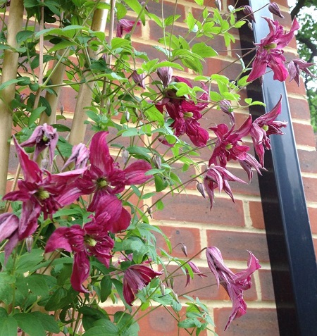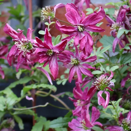 Цветки уникальной формы- махровые, паукообразные, среднего размера, карминово-красно-пурпурные, диаметром 4 см