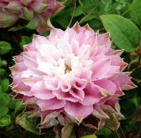 Побеги длиной до 2 метров. Цветки махровые, шаровидные, нежно розово-сиреневого цвета. Диаметр цветка 5-8см. Цветение май-июнь, повторно июль-сентябрь. Высота обрезки 100 см