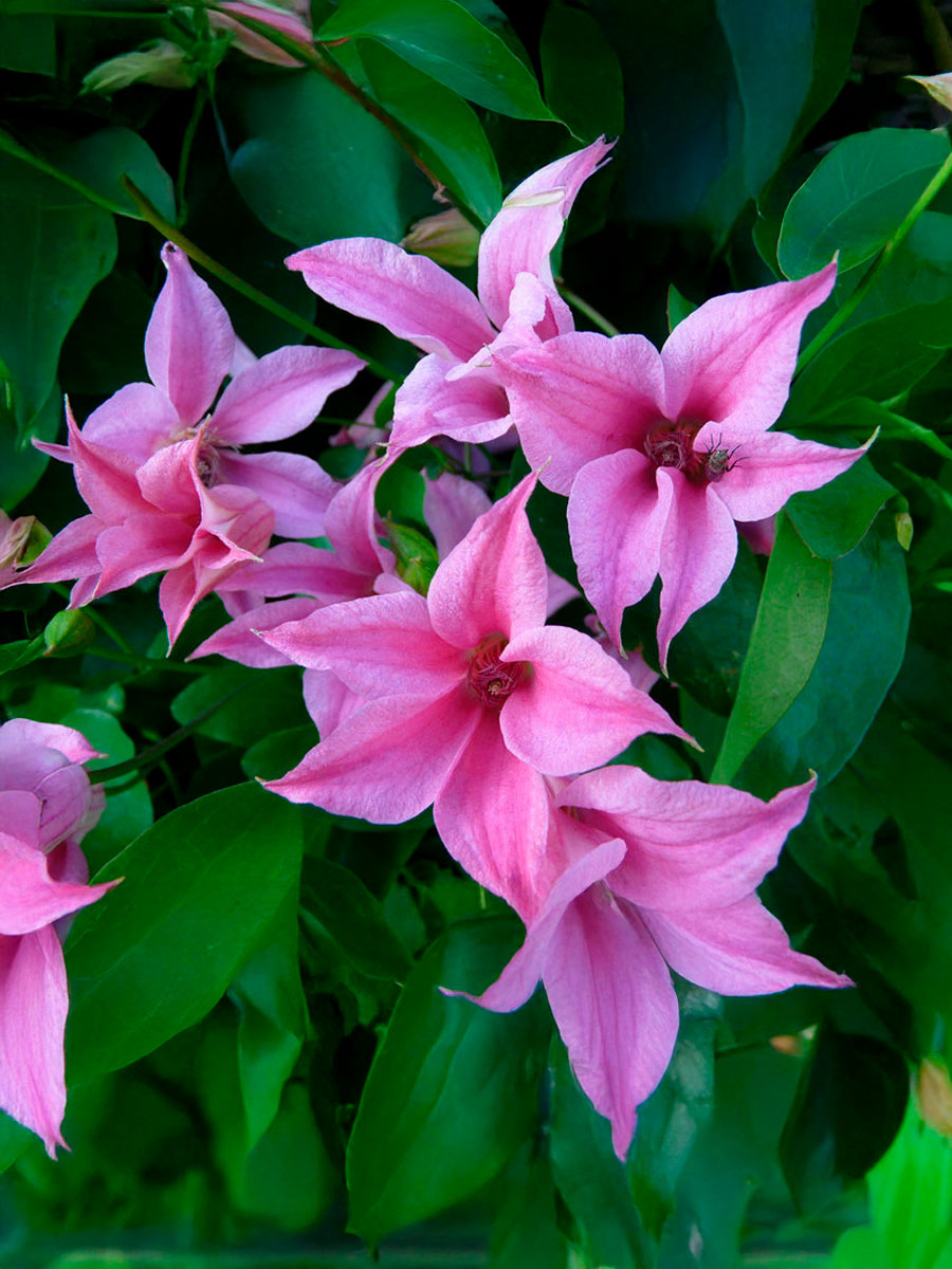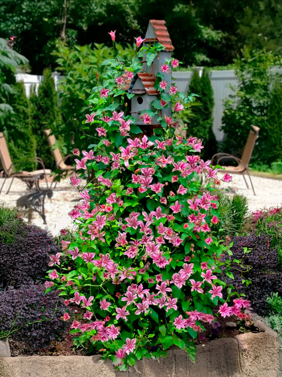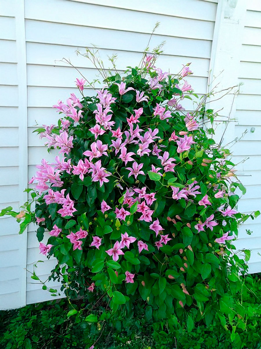 Необычная тюльпановидная форма цветка, яркая розовая окраска, продолжительное цветение, 3 группа обрезки, хорошая зимостойкость, эффектный внешний вид, подходит для вертикального акцента.