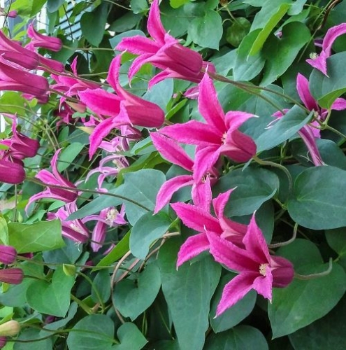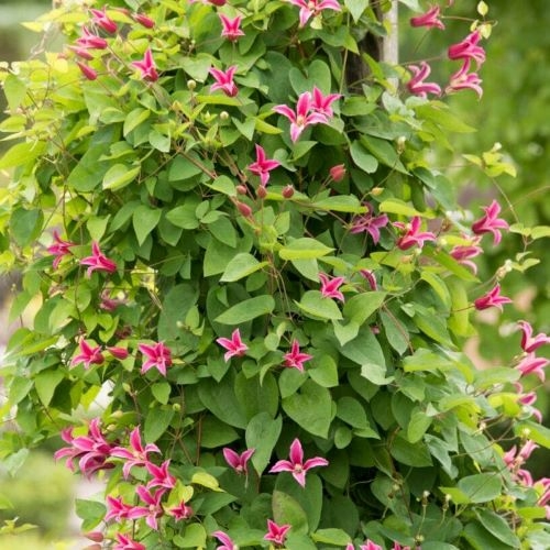 Японский сорт, цветки некрупные, диаметром 4–7 cm, тёмно-розовые, состоят из 4 чашелистиков сильно завёрнутых на концах, по форме напоминающих лилии. У тычинок жёлтые пыльники на бело-кремовых нитках. Обильное цветение с половины июня до начала сентября. Высота обрезки - 3 (сильная). Высота растения 300-400 cm Особенности выращивания:Уход за клематисами включает в себя обрезку, прикрепление к опорам, подкормки и мульчирование, а холодных регионах еще и укрытие на зиму. Хорошо растут на щелочных, нейтральных почвах или на почвах со слабокислой реакцией. Расстояние между клематисами от 70 см до метра. Клематисы не выносят переувлажнения и застоя воды. После того, как вы посадили клематис, обильно полейте его, для лучшего доступа воды и препятствования размытию почвы можно сделать вокруг растения лунку. Неплохо промульчировать почву опилками или торфом. Саженец нужно притенить от прямых солнечных лучей. Сажать клематис рекомендуется на хорошо освещённом, защищённом от ветра месте. Применение: Сажают вдоль заборов, вокруг беседок, рядом с другими декоративными кустарниками, или же при посадке следует сразу установить опору для клематиса ("обелиск", решетку и подобное сооружение). Подвязывать стебли клематиса к опорам следует равномерно в одни слой: это обеспечивает лучшее освещение и в дальнейшем более сильное цветение клематиса.
