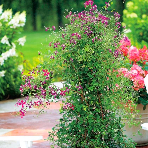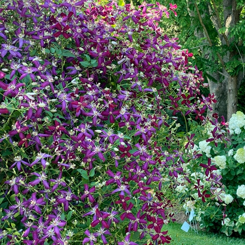 Мощная многолетняя лиана высотой 300–400 см с высокой силой роста. Цветки некрупные, диаметром 4–5 см, звёздчатой формы, вначале пурпурно-красные, затем приобретают фиолетово-сиреневый оттенок. Аромат приятный, с фруктовыми нотками. Цветёт обильно и продолжительно, с июля по октябрь, на побегах текущего года.