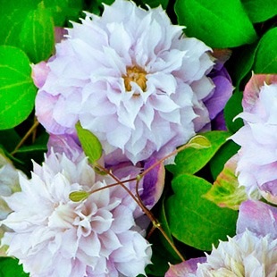 эффектная многолетняя лиана высотой 200–250 см с умеренной силой роста. Цветки крупные, диаметром 12–18 см, махровые или полумахровые, нежно-лиловые с серебристым оттенком. В центре расположены узкие чашелистики, усиливающие многослойный эффект. Цветёт дважды: в мае–июне на прошлогодних побегах – махровыми цветками, в июле–сентябре на молодых побегах – чаще простыми.
