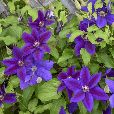 Польский сорт с цветками диаметром 15-20 cм, сложенных из 6-8, фиолетово-голубых лепестков с красно-пурпурной полосой и волнистыми краями. Тычинки имеют красно-пурпурные пыльники и белые нитки. Цветёт май-октябрь. Достигает высотой 2-3м. За опоры цепляется листовыми черешками.