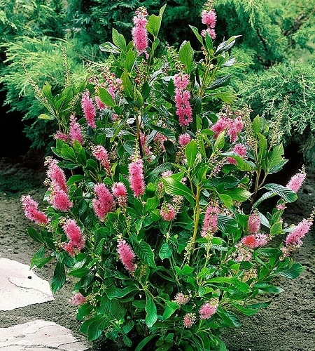 Декоративный кустарник высотой 140-160 см. Цветки душистые, свечеобразные длиной 8-15 см, розовые, цветение эффектное, период цветения июль-август. Листья тёмно-зелёные, глянцевые, разворачиваются только в конце мая, желтеют с наступлением осени и долго не опадают.