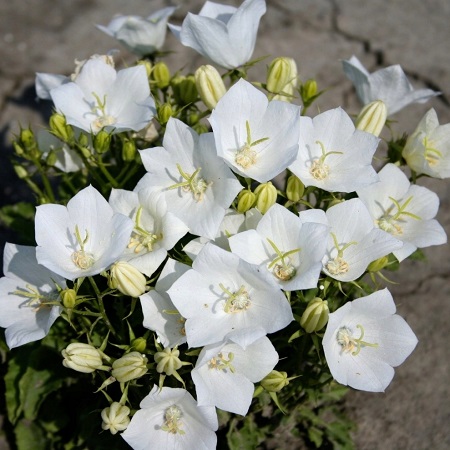 Небольшое многолетнее растение, высотой 15-25 см. Образует красивые компактные кустики, которые в середине лета покрываются крупными чашевидными цветками белого цвета. Время цветения: июль-август.