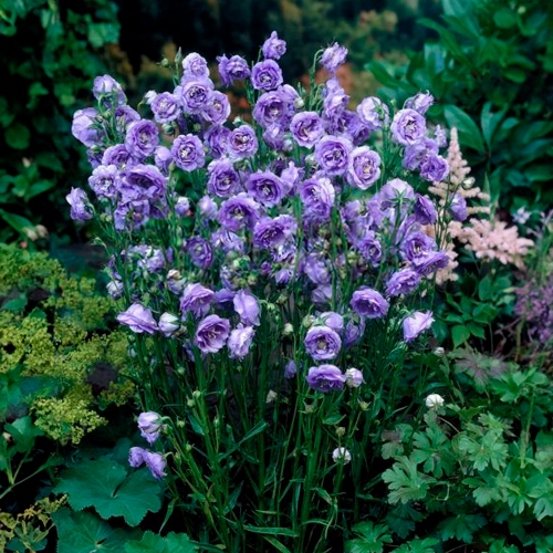 Привлекательное многолетнее травянистое растение, известное своими яркими цветками. Растение образует компактные кустики высотой около 40–60 см и шириной 30–40 см. Листья темно-зеленые, сердцевидные и формируют густую розетку. Цветение происходит с июня по сентябрь и порадует вас крупными, махровыми, светло-сиреневыми колокольчиками, которые собираются в пышные соцветия.