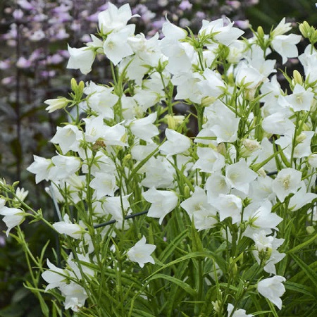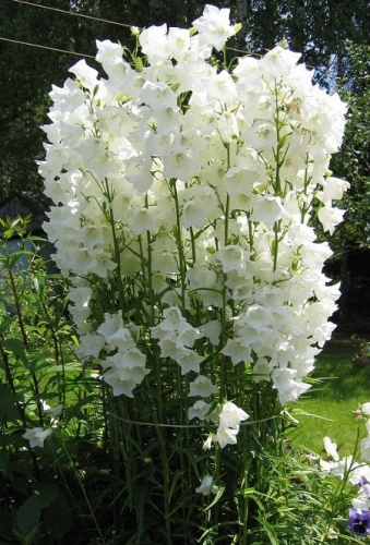 Белоцветущий сорт персиколистного колокольчика. Листья собраны в прикорневую розетку. Высота растения 40-60 см, цветки крупные белого цвета расположены на длинном цветоносе. Время цветения: июль-август. После своевременного удаления отцветших соцветий возможно повторное цветение.