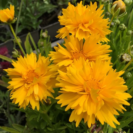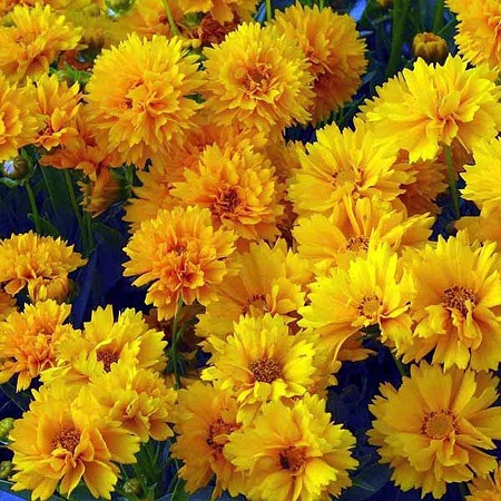 Многолетнее растение высотой 50-60 см образуют плотные шарики усыпанный яркими, солнечными цветами. Цветки полумахровые золотисто-желтые с рифлёными язычками, узкие, трубчатые. Соцветия многочисленные, одиночные корзинки до 6 см в диаметре. Цветение длительное, с июля до холодов без перерыва.