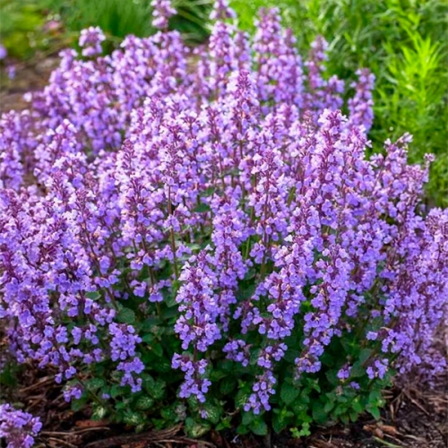 Компактный многолетник высотой до 30 см с узкими, ароматными листьями. Цветет обильно с июня по сентябрь. Цветы насыщенного фиолетово-синего оттенка, собраны в плотные соцветия. Растение неприхотливое, засухоустойчивое и морозостойкое. Привлекает в сад пчел, бабочек и других полезных насекомых. Все части растения обладают приятным ароматом.