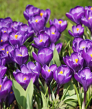 Крокусы - одни из любимых клубнелуковичных эфемероидных растений. Наиболее эффекктно смотрятся группами по 10 - 30 штук. Раскрываются только на солнце. Листья плоские, узкие, собранные в пучок. Большинство сортов зацветает очень рано весной, после чего наращивает листья и уходит в покой.