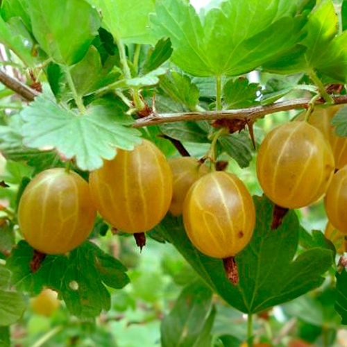 Ягоды созревают в конце июля — начале августа. Они овальные, среднего размера и весят около 2,7 г. Кожица тонкая, но прочная, янтарно-жёлтая с светлыми прожилками. Мякоть плодов сочная, нежная, ароматная, сладкая с небольшой кислинкой. Ягоды хорошо переносят транспортировку и подходят как для употребления в свежем виде, так и для приготовления различных домашних заготовок и напитков.